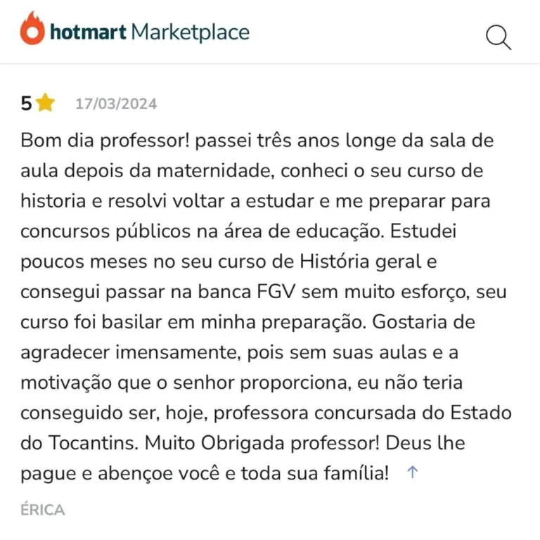“O curso nasceu da minha mentoria para o concurso de professor temporário. Durante essa experiência, sabendo que a disciplina de História é extensa, percebi que nos concursos, não basta acertar muitas questões – é preciso gabaritar. Eu mesmo gabaritei no meu primeiro concurso e, a partir desse marco, decidi transformar minha experiência em um método comprovado.
